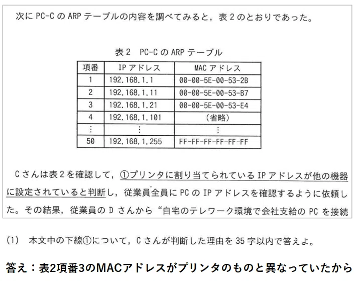 このようにネットワーク構成図が与えられて、そこから障害を特定するというパターンが多いことから、暗記以上に、過去問演習を繰り返してパターンを押さえることが安定して得点を取るコツになります。