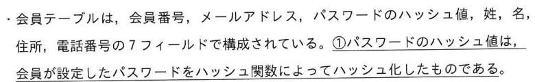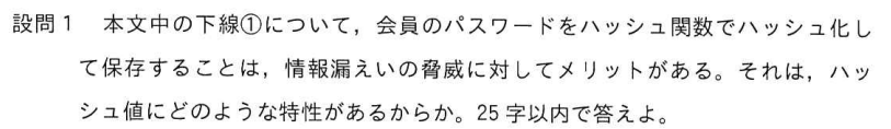 自身の解答:ハッシュには不可逆性がありパスワードの推測が難しいという特性(25文字