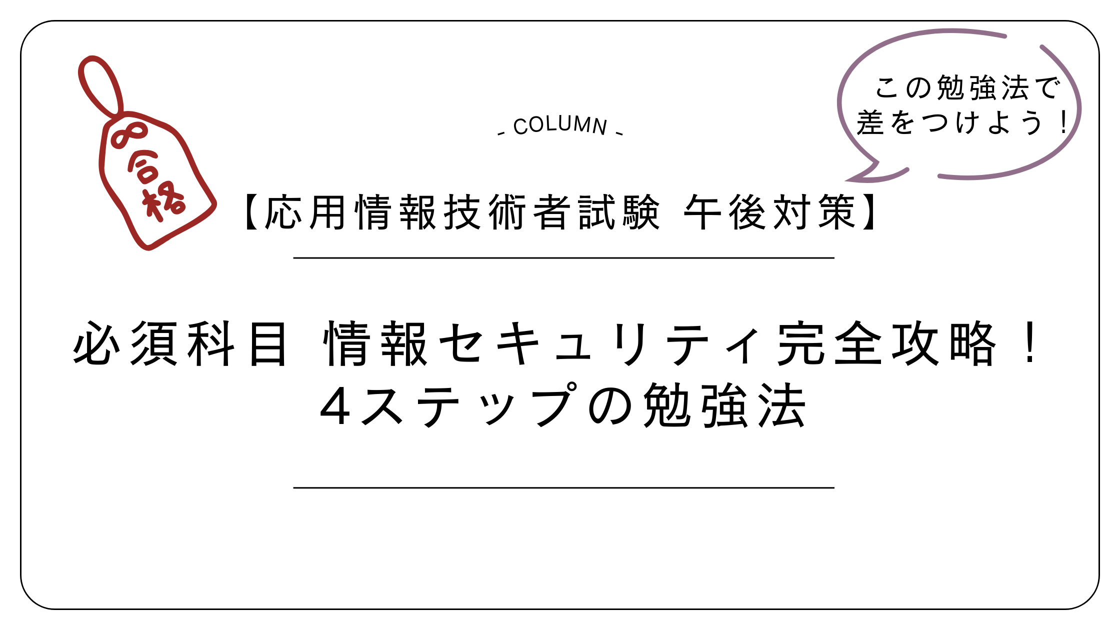 ですので今回は午後試験で必須科目である「情報セキュリティ」に特化した対策方法について具体的に解説していきます!