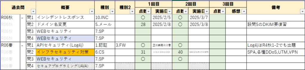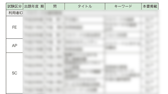 学習履歴表(いつどの過去問をやったかのメモ)を作る方は多いと思いますが、その問題がどの分野だったかまでを記録している人は少数かと思います。
