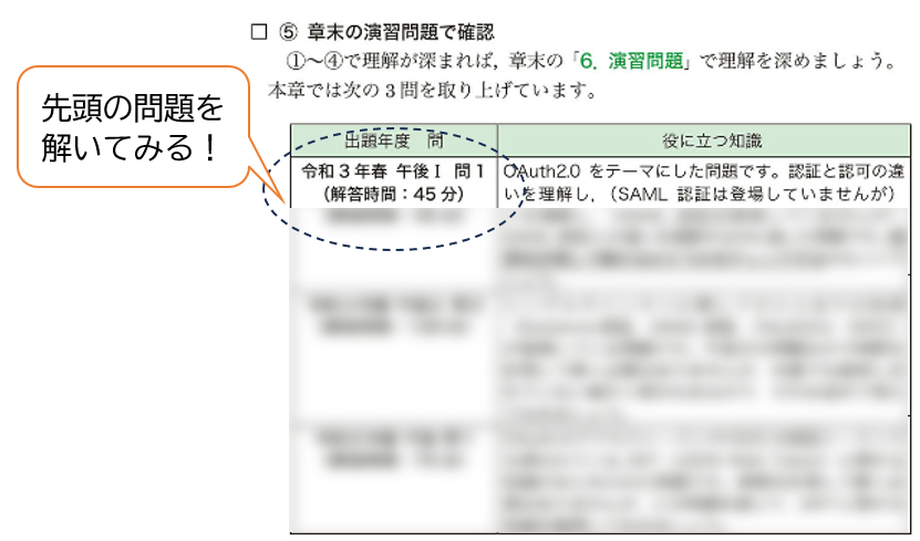 このように分野(章)ごとに試験問題がまとめて掲載されています。時間がない方はこのままでもいいのですが、試験までに2~3か月くらいの余裕がある方であれば、マッピング作業をおすすめします。